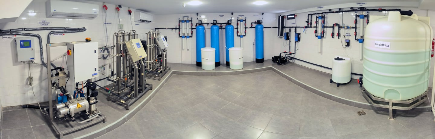 Pour obtenir une qualité d’eau de dialyse recommandée par les recommandations pharmacopées, notre salle de traitement d’eau est équipée des équipements issus de la technologie la plus récente qui répond aux exigences physico-chimiques, bactériologiques et endotoxiques.